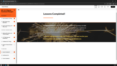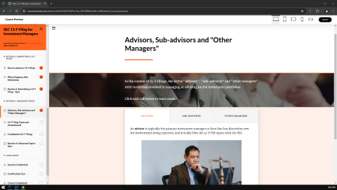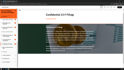Are you an SEC EDGAR filer, investment manager, securities lawyer, paralegal, CPA, bookkeeper, or financial professional looking to enhance your expertise and stay ahead in the competitive landscape of securities regulation and compliance? Look no further! Our cutting-edge platform offers a diverse array of FREE and low-cost self-paced training courses meticulously crafted to empower professionals like you. Using easy-to-understand and simple language, these interactive web-based eLearning training courses present content in an interesting and engaging format for enhanced retention.