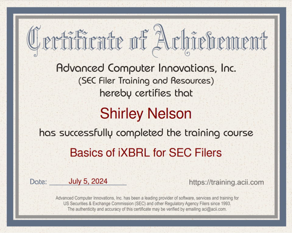 Unlock your potential with our cost-effective, self-paced online training course on Inline XBRL for SEC EDGAR filings! Designed for professionals seeking XBRL certification, our comprehensive course covers everything from XBRL taxonomy and tagging to compliance requirements. Perfect for accountants, financial analysts, and IT professionals, our self-paced online course ensures you gain the skills needed for accurate and efficient XBRL reporting. Join thousands who have enhanced their careers with our interactive, user-friendly courses and earn a certification recognized across the industry. Start your journey to mastering Inline XBRL and streamline your SEC EDGAR filings today!